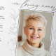 Elegant floral line art tri-fold funeral program template offers a timeless, minimalist design perfect for honoring the life and memory of a loved one with understated beauty. This six-panel folded layout features delicate hand-drawn botanical illustrations in soft gray tones, paired with clean typography and a refined layout for a dignified and heartfelt memorial keepsake. The front panel includes space for a photo and custom name with an “In Loving Memory” script header, while the interior panels provide editable sections for an obituary, acknowledgments, order of service, tributes, quotes, and personalized headings. A larger photo space in the center panel allows for a prominent visual tribute, surrounded by elegant floral sketches that add warmth without overpowering the content. Ideal for funerals, memorial services, or life celebrations, this fully customizable template helps guide attendees through a meaningful ceremony while serving as a cherished remembrance piece for family and friends. The neutral color scheme makes it suitable for any theme or setting.
