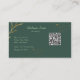 A sleek and elegant business card featuring a dark green background with gold botanical trim and a scannable QR code. Perfect for creatives, small businesses, and professionals who love a modern, nature-inspired aesthetic.