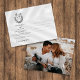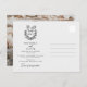 This beautifully designed wedding postcard invitation offers a romantic and modern alternative to traditional invites. The front features a timeless black and white layout with a graceful dove and floral crest, personalised monogram, and elegant typography highlighting the couple’s names and wedding details. A handwritten-style script adds a personal and inviting touch. The back of the card showcases a full photo of the couple, creating a heartfelt visual keepsake for guests. Ideal for minimalist, rustic, garden, or formal weddings, this postcard design combines sentimentality and sophistication in a compact, stylish format.