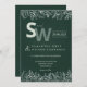 This nature-inspired botanical wedding invitation beautifully blends minimalist elegance with lush greenery. Set against a deep forest green background, it features delicate white leafy illustrations adorning the top and bottom borders, creating a refined and organic aesthetic. The large monogram initials stand out in modern typography, while subtle accents like the wedding date banner and fine foliage give the card a timeless charm. Perfect for simple weddings, garden ceremonies, and eco-friendly celebrations, this minimalist wedding stationery captures the harmony of nature and modern sophistication.