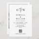 Modern botanical QR code wedding invitations with a photo back offer a refined and stylish single-card solution for contemporary couples. One side features a clean black and white layout with elegant serif typography, a delicate botanical monogram, wedding details, and a built-in QR code for digital RSVPs or event info. The other side showcases a full-sized engagement photo framed by a crisp white border, with the couple's initials and wedding date below in matching fonts for a cohesive look. This minimal yet striking design is perfect for elegant weddings that combine classic sophistication with modern functionality. Available as printed cards or an instant digital download.