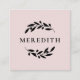Minimalist Botanical QR Code Feminine Blush Pink Square Business Card Template... Modern minimalist business card with a botanical wreath of olive branches bordering your name on a feminine blush pink background. The blush back of the card displays your personalised QR code and contact information in chic black sans serif typography. The example QR code and all text on front and back can be easily revised with your own details on the personalisation template.