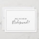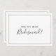 This minimalist bridesmaid proposal card is perfect for a simple wedding. The modern romantic design features classic black and white typography paired with a rustic yet elegant calligraphy with vintage hand lettered style. Customisable in any colour. Keep the design simple and elegant, as is, or personalise it by adding your own graphics and artwork. Customise the card with the name of the bride and the bridesmaid. Personalise the back of the card with a personalised message.
