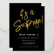 Celebrate in style with our Modern Minimalist Black Gold Surprise Birthday Party Invitation. Featuring a chic brush script font for "It's a Surprise" in real gold foil and fully customisable text, this sleek design is perfect for adult birthday parties. Personalise the details with ease using our design tool—change the background and text colours to match your theme. Professionally printed on high-quality paper, this invitation combines simplicity and elegance, making it the perfect choice for a sophisticated celebration.