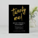 Celebrate in style with our Modern Minimalist Black Gold Brush Script 21st Birthday Party Invitation. Featuring a chic brush script font for the age (can be changed to any other number in the design tool) in real gold foil and fully customisable text, this sleek design is perfect for adult birthday parties. Personalise the details with ease using our design tool—change the background and text colours to match your theme. Professionally printed on high-quality paper, this invitation combines simplicity and elegance, making it the perfect choice for a sophisticated celebration.