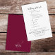 Wedding details website enclosure card with online rsvp. This design features a burgundy simple minimalist details template, timeline minimal online rsvp, wedding website response reply, rsvp via website web site, simple ampersand calligraphy typography, calligraphy monogram initials back, wedding information info more, guest information reception time, ceremony wedding day timeline, wedding hotel guest service details