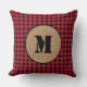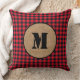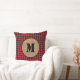 Minimalist Burlap and Red Buffalo Plaid Monogram Cushion
