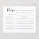 Minimalist Calligraphy Bridal Shower Recipe Card