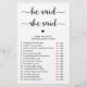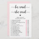 These adorable He Said She Said game cards are a fun Bridal Shower activity. Simply pass them around during the shower where guests will have fun guessing who said each statement, the bride or groom to be.