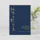 Minimalist Calligraphy QR Code Navy Blue and Gold Wedding. Available digitally and printed. Optional QR code to your wedding website on the back which will be automatically generated when you change the sample url to your own website url or delete sample code if not required. Stylish set calligraphy is rotated to the left hand side, with all the details stylishly to the right with lots of empty space for a contemporary feel. Easily personalise with your details. And change the colour of text and background if you wish via the edit further option.