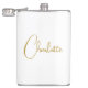 Minimalist Calligraphy Script Name Gold Colour Hip Flask