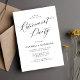 Elegant simple minimal clean black and white retirement party invitation template featuring a classy stylish trendy chic handwriting calligraphy script. ++++++++++++ Easy to personalize with your details!
