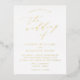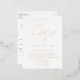 Elegant wedding invitation postcards featuring your wedding details displayed in gold foil lettering accented by a beautiful calligraphy script. The back of the gold foil wedding invitation postcard displays your return address, RSVP details, and wedding website. This gold foil wedding invitation postcard is designed to coordinate with our Minimalist Calligraphy wedding collection.