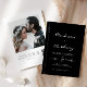 Modern & chic black and white wedding invitation featuring elegant calligraphy script and personalised monogram initials with personalised QR code, custom photo and more wedding detailed information on the back.