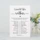 These adorable Would She Rather game cards are a fun Bridal Shower activity. Simply pass them around during the shower where guests will have fun figuring out which activity the bride to be would rather do.