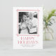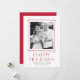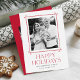 Cute holiday card featuring your photo inside of a candy cane frame. "Happy Holidays" is displayed in trendy red lettering. Personalize the front of the candy cane Christmas card by adding your name and the year. The card reverses to display an additional photo and your personal message in white lettering on a red background.