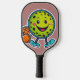 Minimalist cartoon pickleball sticker with happy f paddle
