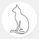 Minimalist Cat Line Art – Black Outline Silhouette Classic Round Sticker