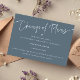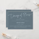 Postponing a big event like your wedding can be stressful, but you can still look stylish with this modern and minimalistic change of plans template card. It says "change of plans" in stylish script font at the top with a little heart. The background is slate blue.
