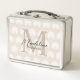 Minimalist Chic Beige Anahaw Leaf Script Monogram Metal Lunch Box