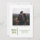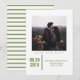 Minimalist Chic Photo Save the Date Announcement with a fresh and modern geometric line design in green. Simple black stripes adorn the back of this flat card. Add a photo and your wedding details to customise. Background colour on back side of invite may be changed to complement the photo or to add your wedding colour.