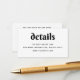Share important information with this minimalist wedding details card, designed with a clean white background and bold black typography. Perfect for including RSVP instructions or your wedding website. This card also features a QR code on the back, giving guests instant access with a quick scan. The modern yet timeless design complements any wedding stationery suite.