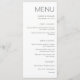 This simple and modern wedding menu card features elegant grey text on a white background.