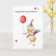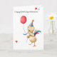 What a cute celebration is this chicken doing. With his red balloon and his party hat, this cute animal is having the time of his life. Great card for any celebration, personalise the text with your own message. Illustrated and designed by Patricia Alvarez.