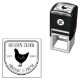 Brand your eggs with a clean, modern look! This stamp features a simple chicken illustration within a classic border. Customise it with your farm or business name and establishment year for a professional touch. High-quality self-inking stamp for clear and consistent imprints.