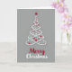 This Christmas card features a modern, minimalist take on a tree, set against a calm grey background. The tree is crafted from white ribbons spiraling upwards, giving a sense of movement. It is decorated with red and white ornaments and topped with a bright crimson star. The color scheme of grey, white, and red adds elegance to the design.