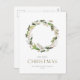 This elegant minimalist Christmas card features a beautiful watercolor wreath made of delicate greenery and subtle red berries. The clean design highlights a "Merry Christmas" greeting with space to personalise the family name and year, making it perfect for festive correspondence. Ideal for sending warm wishes during the holiday season with style and simplicity.