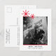 A chic, minimalist holiday Postcard featuring timeless typography with 'Merry Christmas' in bold black lettering against a clean, simple white backdrop, accentuated by a festive red accent on the reverse side. Customise the photo, holiday message, and your name for a personalised touch. This modern, minimalist design will make you stand out this holiday season! The displayed image is for reference and can be replaced with your own photo. The placeholder image showcases a young couple in classic monochrome grayscale, adding a touch of elegance.