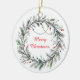 Minimalist Christmas Wreath and Lights Ceramic Ornament