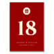 Simple Minimalist Ivory/Cream/Beige Round Circle Double Happiness On A Red Background Double Sided Chinese Wedding Table Number Card.
