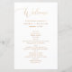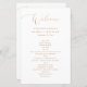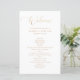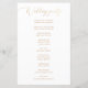 This wedding program features elegant gold style calligraphy paired with clean serif text on a white background. Designed for simplicity and sophistication, it outlines your ceremony order in a clear, easy to read layout. The printed gold effect (not real foil) creates a luxe touch without extra cost. Perfect for modern, minimalist, classic, or formal weddings. This customisable program adds a refined and personal detail to your big day.