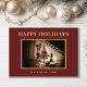 This minimalist classic holidays red photo and letter holiday card features modern, minimalist design that is both elegant and simple. Whether you prefer a classic, traditional look or a more contemporary style, with gold typography on a red background, you'll find the perfect card to celebrate the season. Personalise your cards easily to create a memorable holiday greeting. Shop our collection today for beautifully crafted cards that capture the spirit of the holidays! As with all of our designs, if you have any questions or special requests please just ask.