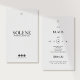 Modern minimalist clothing hang tag template designed for fashion brands, boutiques, and handmade clothing businesses. The clean and elegant layout includes space for style name, size selection, care instructions, and price on one side, with a modern brand label on the other.