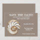 Announce your special day with quiet elegance and timeless coastal charm. This minimalist save the date design features a beautifully detailed conch shell in soft off-white, beige, and warm brown tones, set against a smooth taupe background for a clean and sophisticated look.