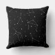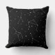 A sleek and modern seamless pattern throw pillow featuring constellations scattered across a deep black sky. The minimalist white star outlines create a celestial and timeless aesthetic, perfect for space enthusiasts, astrology lovers, and night sky dreamers. This constellation design adds a touch of cosmic wonder to any space.