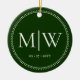 Minimalist Couple Monogram Photo Green Holiday Ceramic Ornament