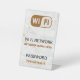 Enhance your business or event with our customisable White Stone Texture Colour WiFi Network Password Pedestal Sign. This 4" x 6" sign, featuring a 2" pedestal base, is perfect for counters, desks, and display tables. Made from durable 1/16" white plastic polystyrene, it boasts a high-quality, full-colour, digital print that ensures your personalised message stands out. Available in four sizes, this customisable sign is an elegant and practical addition to any space.