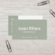 Project a polished and nature-inspired brand image with this clean, two-sided business card design featuring a sophisticated sage green color block. The front is dedicated to the essential name and title in crisp white text against the solid green background. The back offers a contrasting split layout with a vertical sage sidebar, clearly organizing all contact details like email and social handles on the white side in a highly readable, modern, and eco-chic format.