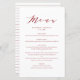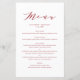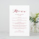 Customisable script menu card featuring elegant script, simple typography and stripes pattern. This script menu card is perfect for any wedding theme and season. Personalise by adding names, date and menu details.