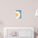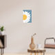 A modern abstract wall art piece featuring a stylised daisy with a bold yellow centre and clean white petals against a muted blue background. Its minimalist design and fresh colour palette make it a perfect accent for contemporary interiors, adding a touch of nature-inspired elegance to any space.
