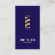 Minimalist Dark Blue Golden QR Code Barber Business Card