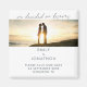 Minimalist fashion for your save the date invites, with this keepsake for your invitees. Handwritten style set grey script We Decided On Forever is beneath your photo which is at the top. The rest of the typography you can easily personalise. Replace the sample photo in the template placeholder with your own favourite. One cropped to panoramic ratio with the subject area centred will work best. You can also change the white background via the Customise Further option if you wish, as well as the text colour to better match your chosen photo if necessary.