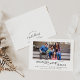 This minimalist decking new halls moving announcement holiday card is the perfect simple holiday greeting and to announce your new address. The design features classic black and white typography paired with a rustic yet elegant script font with hand lettered style. Personalise the card with your family photo, names and year on the front and your new address on the back.
