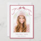 Minimalist Deep Blush Bow Graduation Photo Thank You Card