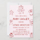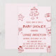 The soft blush background paired with minimalist red line art creates a warm, modern, and playful design perfect for a cozy baby shower celebration. This invitation is ideal for baby girls, gender-neutral showers, baby sprinkles, or casual at-home gatherings.