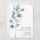Minimalist Dusty Blue Eucalyptus QR Code Wedding Invitation